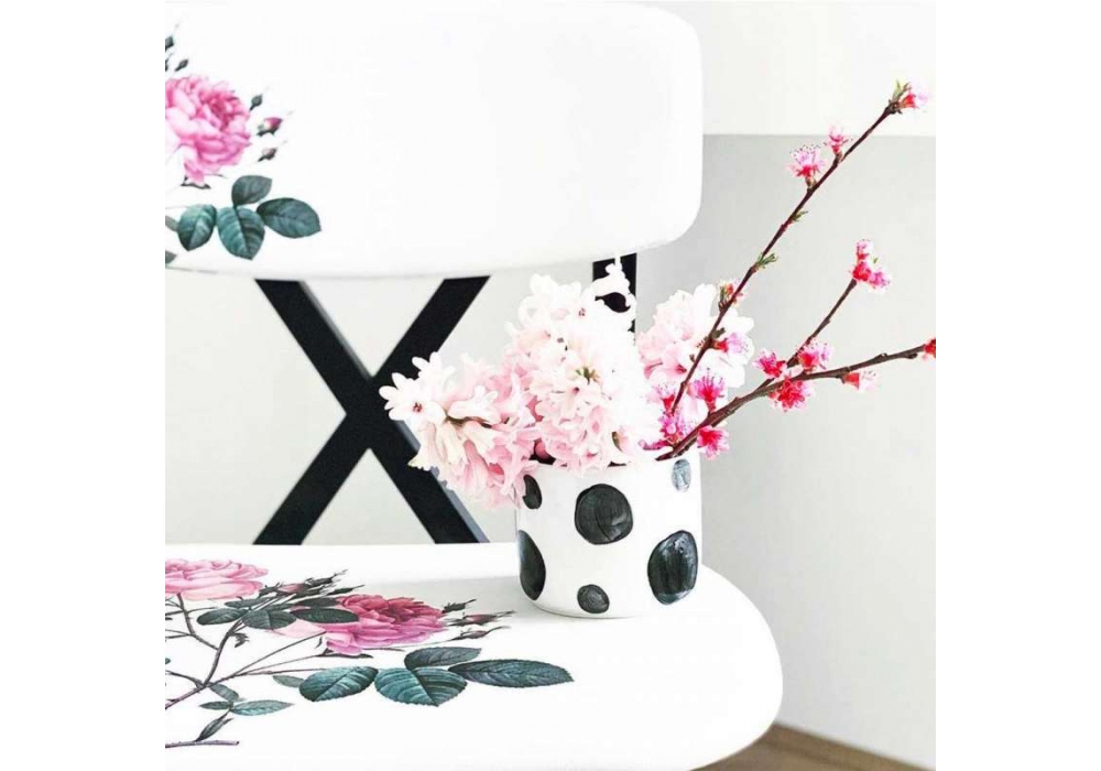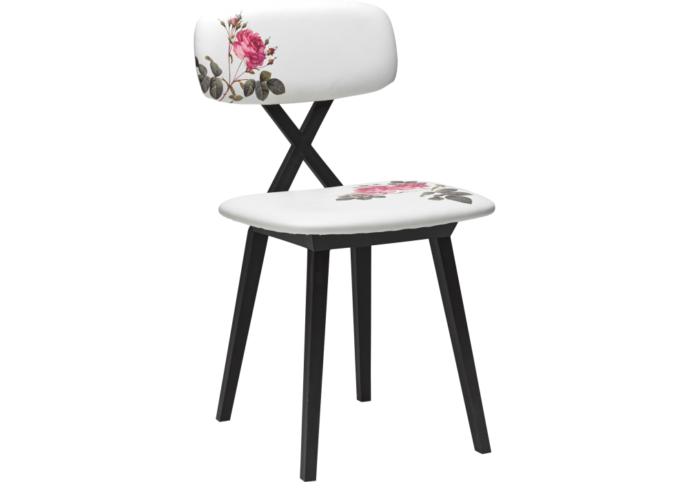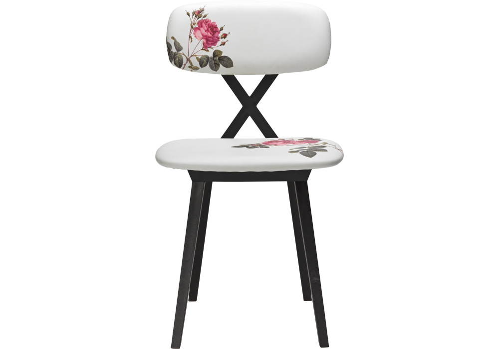 X Chair With Flower designed by Nika Zupanc for Qeeboo is a structured chair in polypropylene with cushions in floral patterned fabric. X Chair With Flower comes a set of 2.