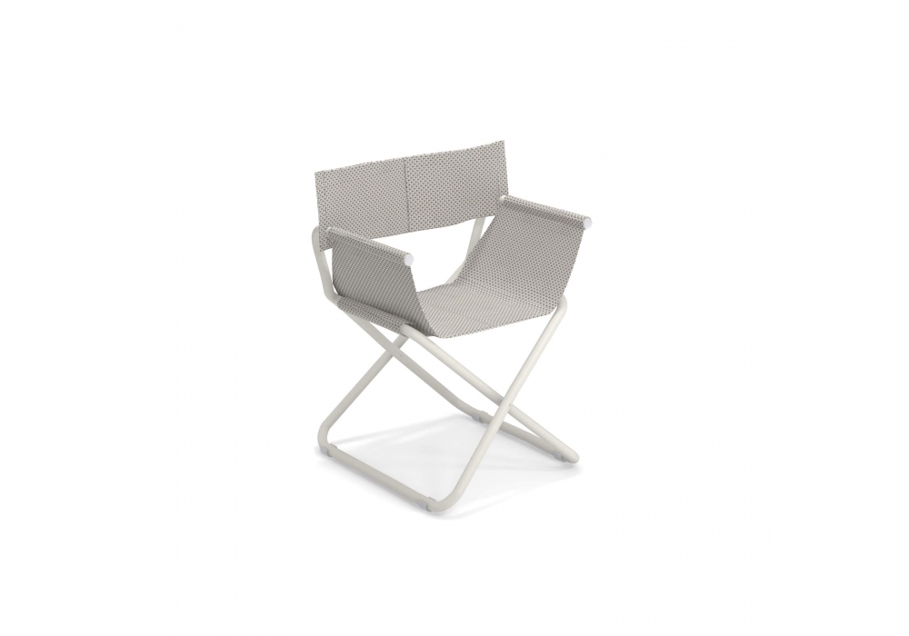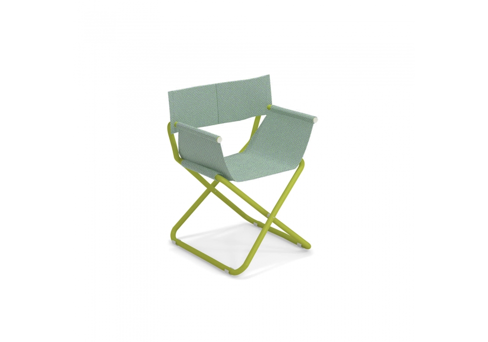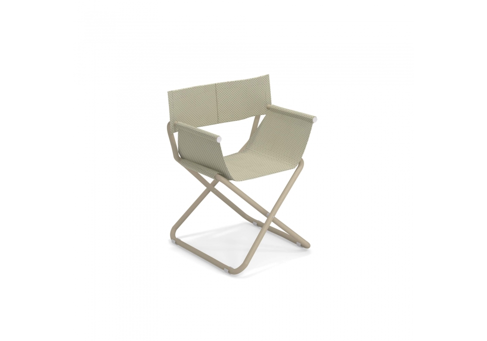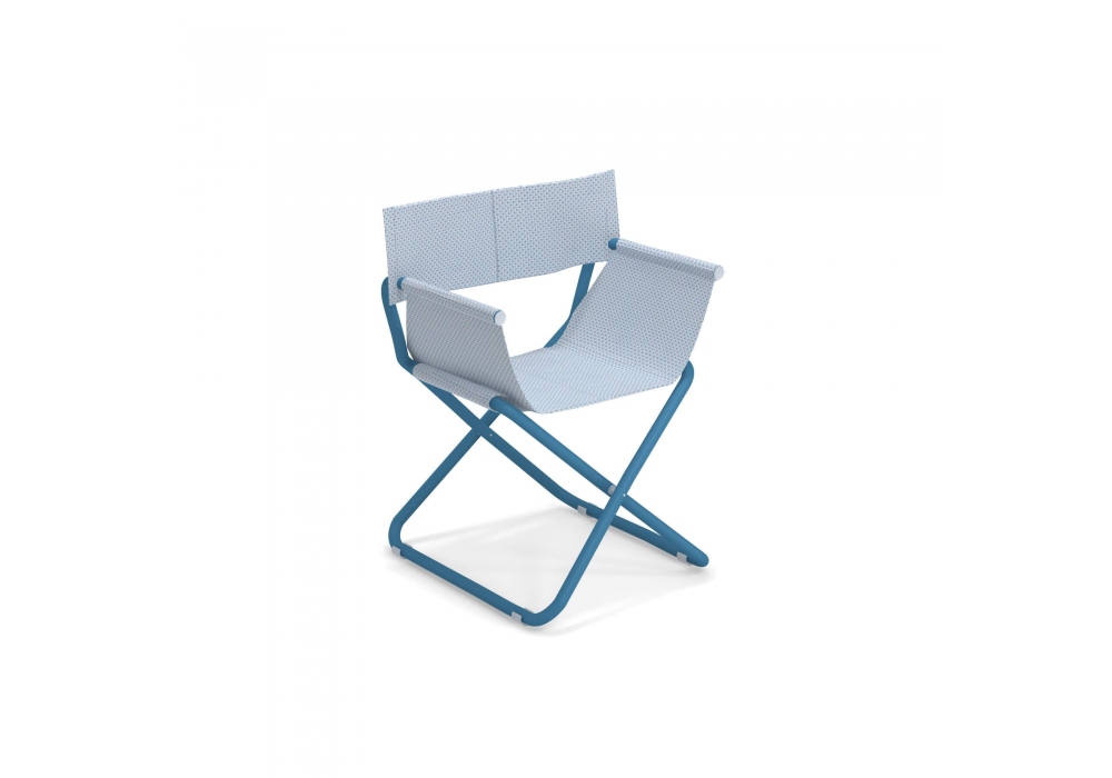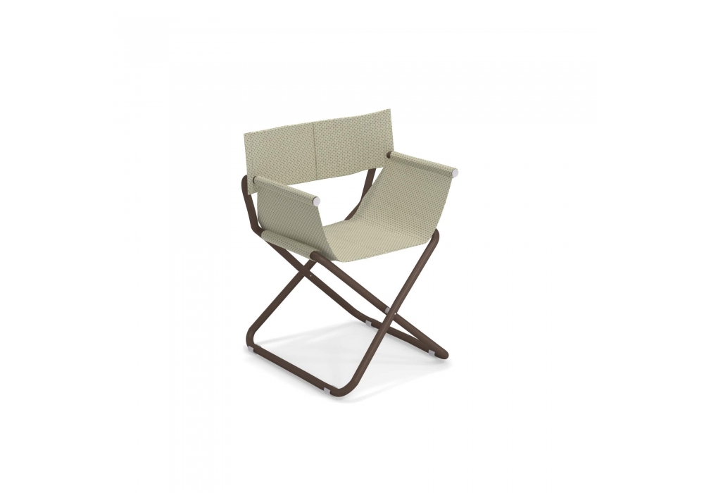 Snooze designed by Chiaramonte / Marin for EMU is a director's chair, with large dimensions and a sinuous and enveloping shape. Through a simple armrest adjustment mechanism, the seat can assume two positions, for reading and for resting. Available in different finishes.