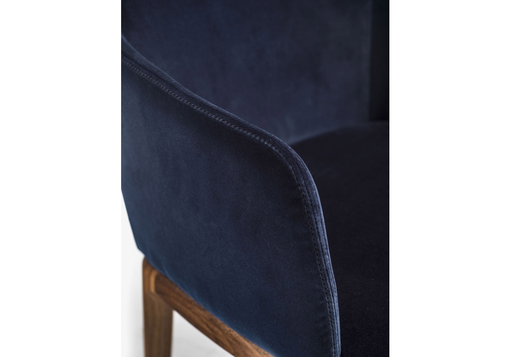 Cloe Arm designed by C.R. & S. Riva 1920 is a chair with solid wood legs and polyurethane foam shell in continuity with seat and back. Upholstery in leather or fabric, backrest with diamond stitching or smooth.