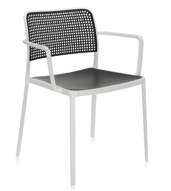 Audrey designed by Piero Lissoni for Kartell is a chair made with painted aluminum structure and mass-dyed modified polypropylene seat and backrest. Available with or without armrests.