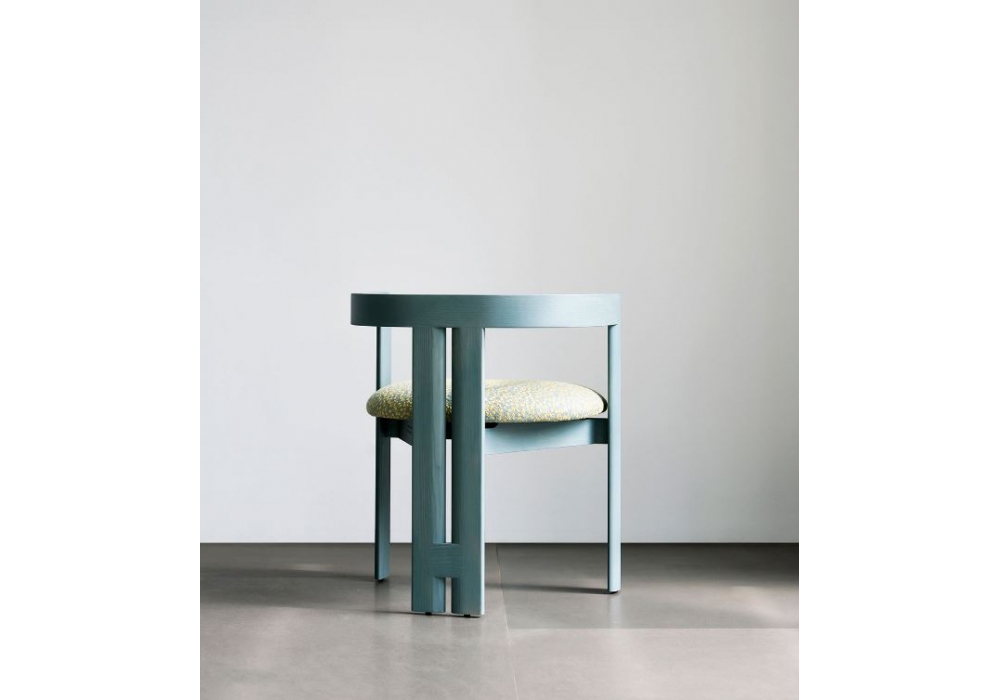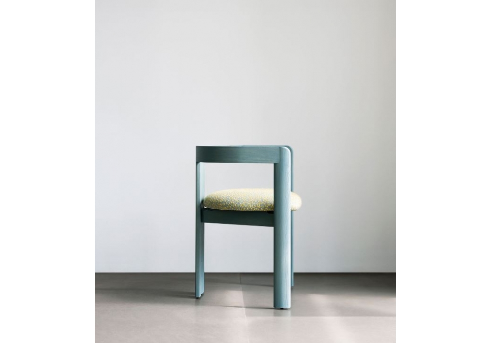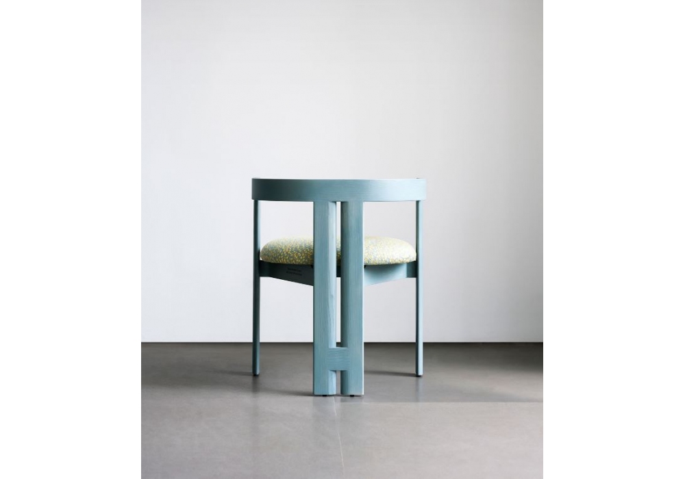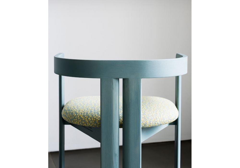 Pigreco The Blue Window designed by Tobia Scarpa for Tacchini is a limited edition chair numbered in 100 exclusive pieces. Made in shades of blue with aniline dye, the seat is upholstered in Ria by Kvadrat fabric designed by Raf Simons, inspired by the painting technique of pointillism, in which the fragmented colors return a subtle luminous effect.