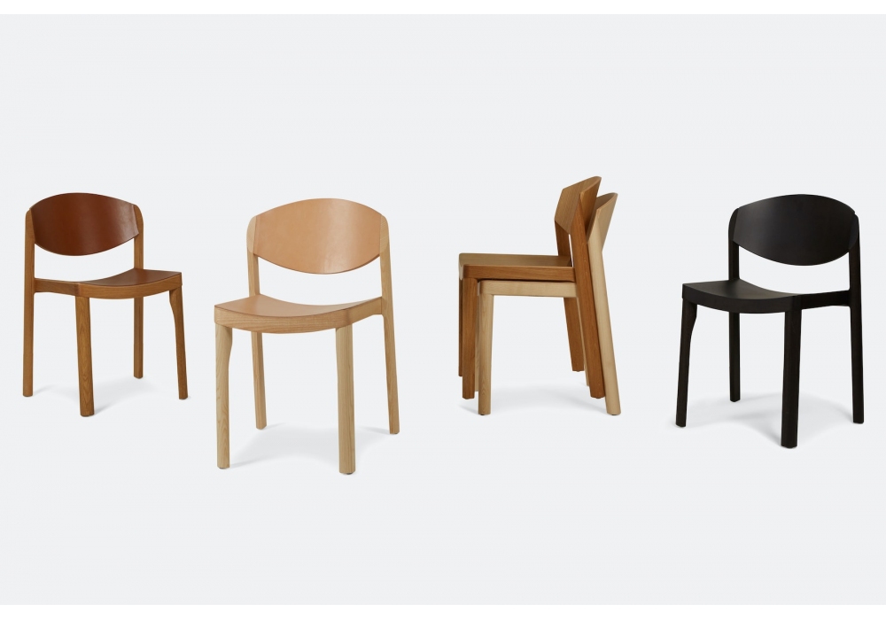 Mauro designed by Mauro Pasquinelli for Established & Sons is a stackable wooden dining chair available in ash and oak. Available with fixed and non-removable seat and back in leather.