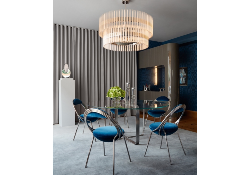 Musico produced and signed by Lee Broom is a chair with tubular steel structure and upholstery in fabric or leather in different finishes.