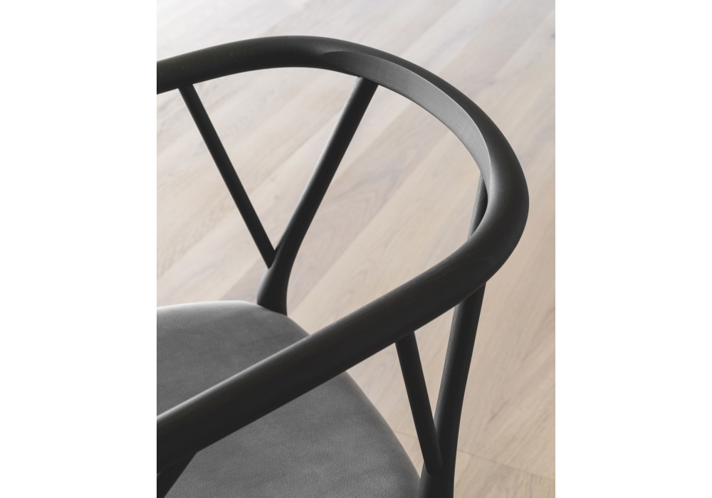 Valerie designed by Giopato and Coombes for Miniforms is a chair with wooden structure, seat with cushion covered in fabric or leather. Available in different finishes and in the version with or without armrests.