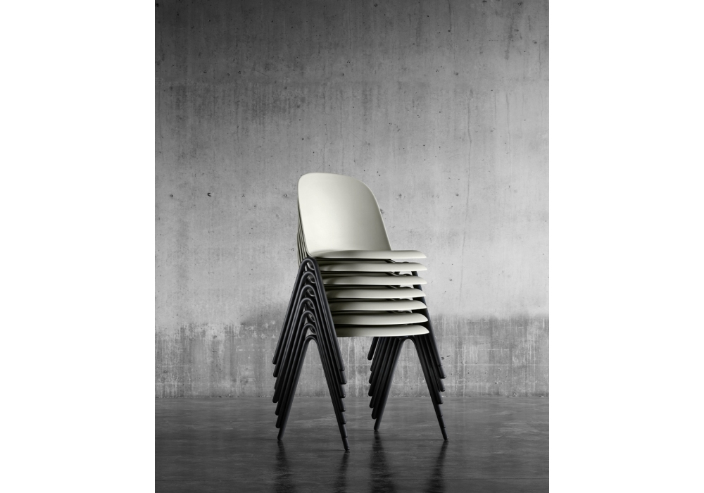 Mariolina Edu designed by E-ggs for Miniforms is a chair with polypropylene shell and hookable base in anthracite painted or galvanized rod. Available in different finishes.