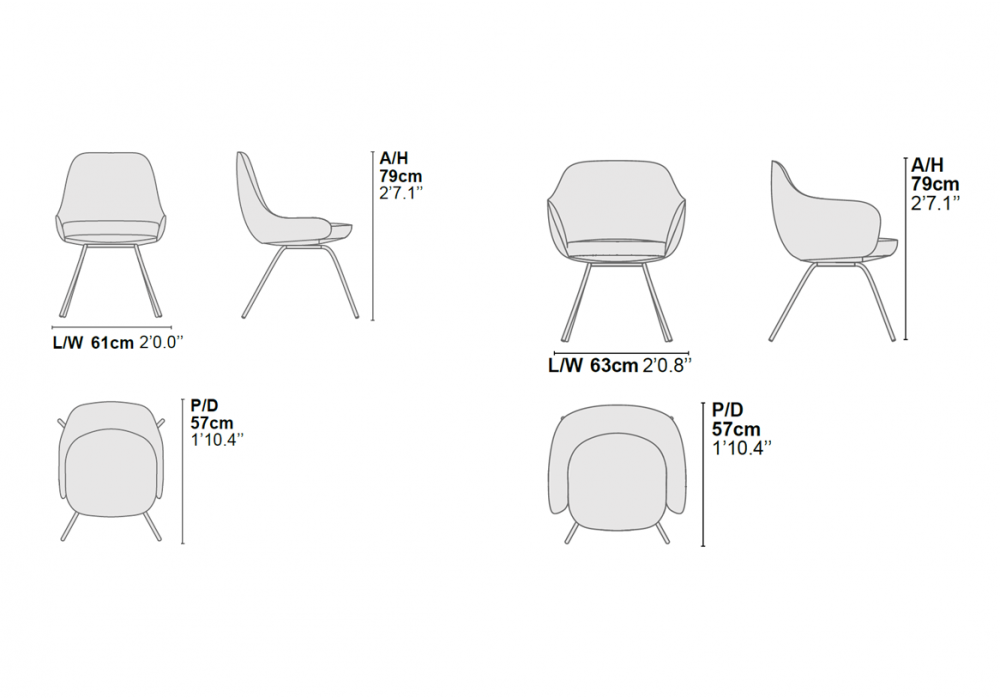 | Dimensions | SED01: 61 x 57 x H 79 cm; SED02: 63 x 57 x H 79 cm. |