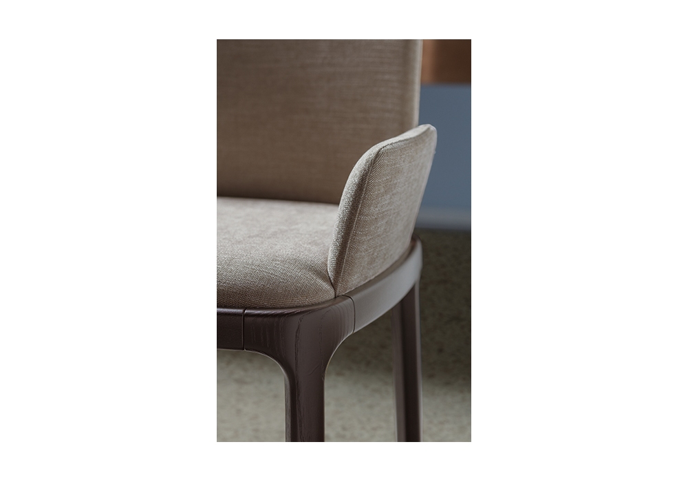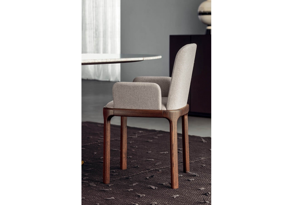 Inari designed by Philippe Tabet for Pianca is a chair made with solid ash structure painted for the Essenza or Matt Lacquered open pore finishes. Seat, back and armrests with plywood panels, upholstered in non-removable fabric or leather.