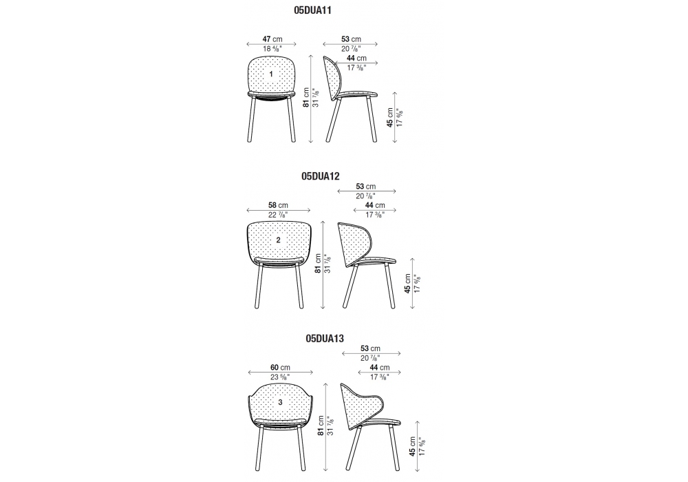 | Dimensions | 47 x 53 x H 81 cm; 58 x 53 x H 81 cm; 60 x 53 x H 81 cm. |