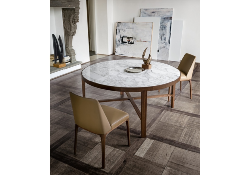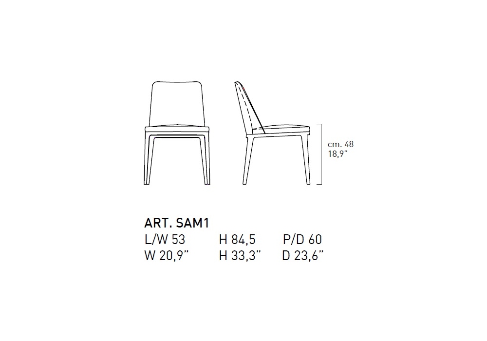 Amanda designed by Giuseppe Bavuso for Alivar is a chair made with legs in solid painted ash or national walnut. Metal shell covered with cold-foamed polyurethane and polyester fiber lining. Upholstery in leather or fabric.