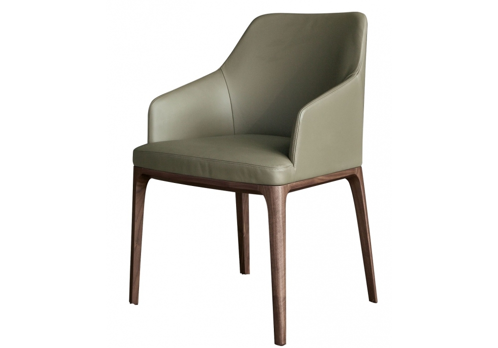 Amanda Comfort designed by Giuseppe Bavuso for Alivar is a chair with armrests made with legs in solid painted ash or national walnut. Metal shell covered with cold-foamed polyurethane and polyester fiber lining. Upholstery in leather or fabric.