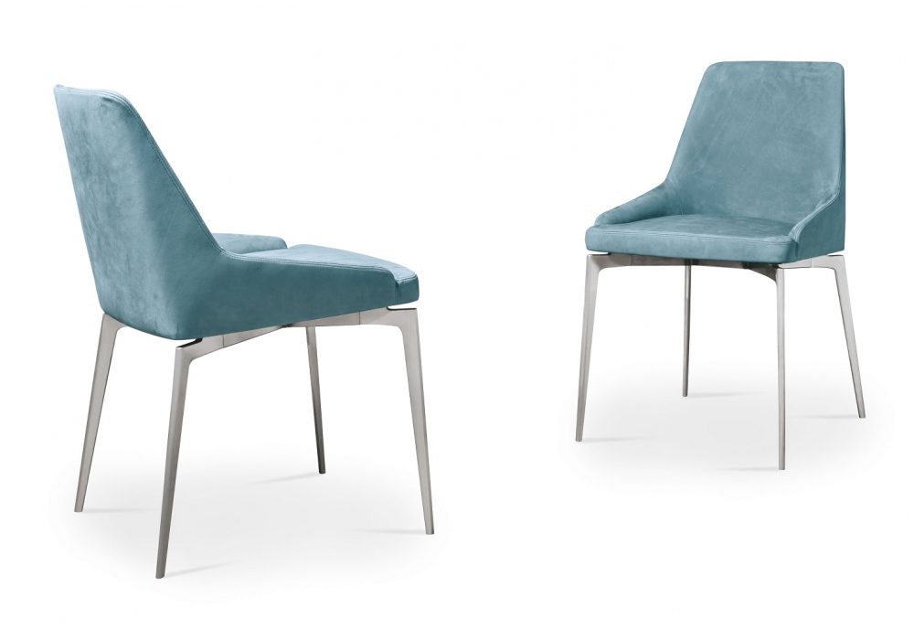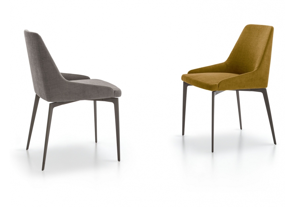 Annika designed by Giuseppe Bavuso for Alivar is a chair made with legs in painted, chromed or black nickel cast aluminum. Steel shell covered in cold flexible polyurethane foam, with polyester fiber lining. Upholstery in leather or fabric.