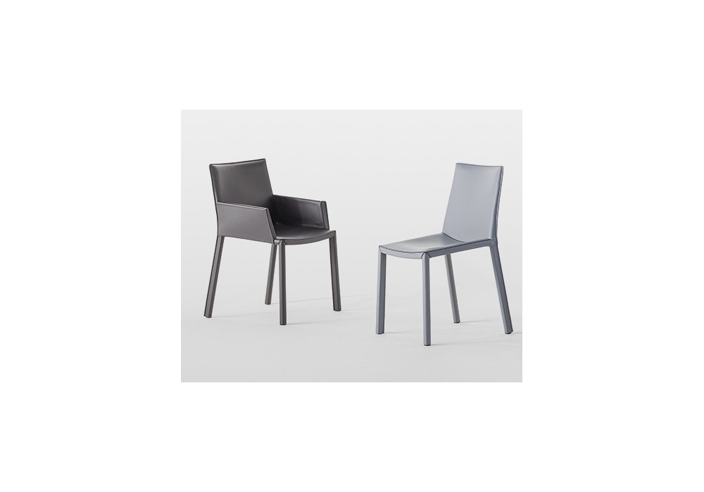 Mirta New designed and produced by Bonaldo is a chair with internal structure in steel and upholstery in saddle leather, leather or eco-leather in different colors, stitching and black border. The padding is in non-deformable high-density rubber. Available in 2 models.