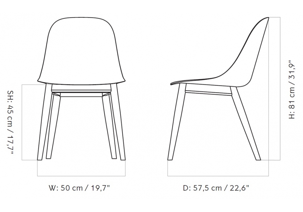 Harbor Side Oak designed by Norm Architects for Audo Copenhagen is a chair with polypropylene shell and oak legs. Available in different finishes.