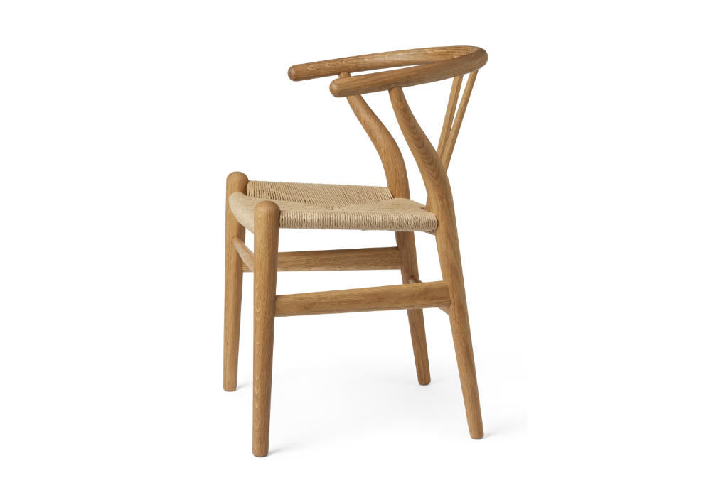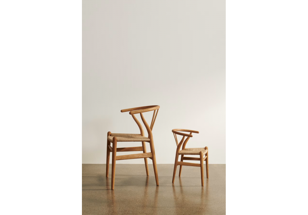 CH24 Child designed by Hans J. Wegner and Ilse Crawford for Carl Hansen & Søn is a children's chair with a solid oak oil wood frame. Seat in natural paper cord. It is possible to add a seat cushion in black leather Loke 7150.