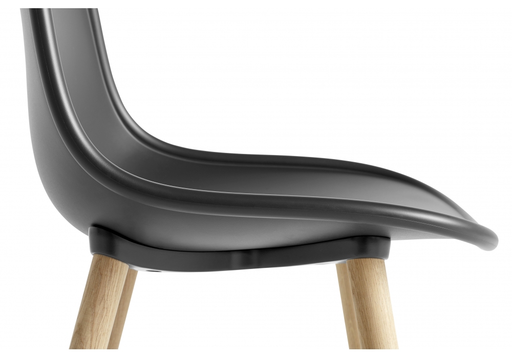 Neu 12 designed and produced by Hay is a chair with solid color injection molded polypropylene shell with soft black die-cast aluminum base with solid oak legs. Available in different finishes.