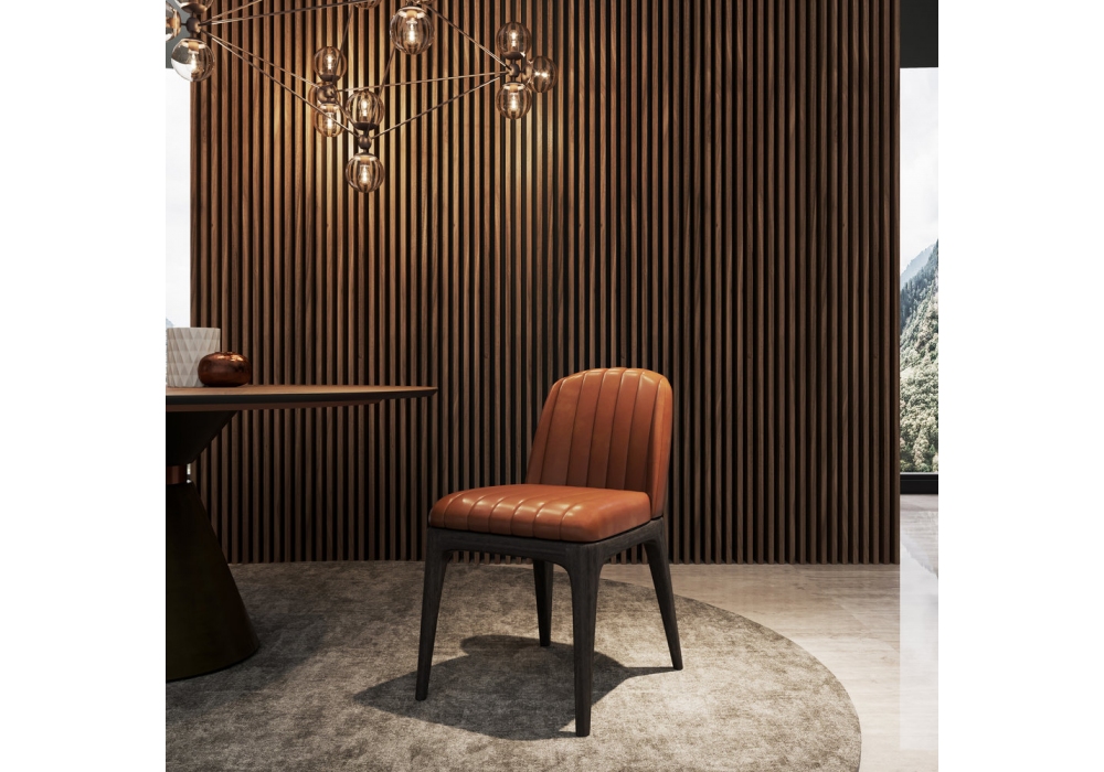 Milano produced and signed by Gual Design is a chair with structure in ash wood with walnut colored polyurethane varnish and upholstery in fabric or leather. Available in different finishes.