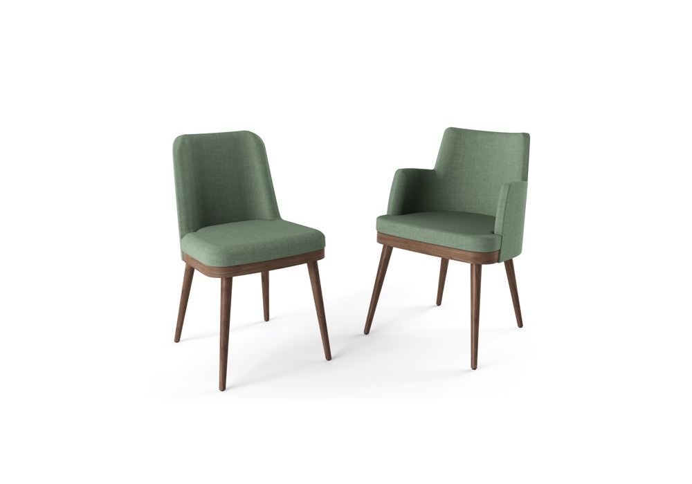 Kelly designed by Area44 for Gual Design is a chair with structure in ash wood stained with walnut color polyurethane paint. Seat base and back in MDF covered with high density foam and padding. Fabric lining. Available in different dimensions and finishes.