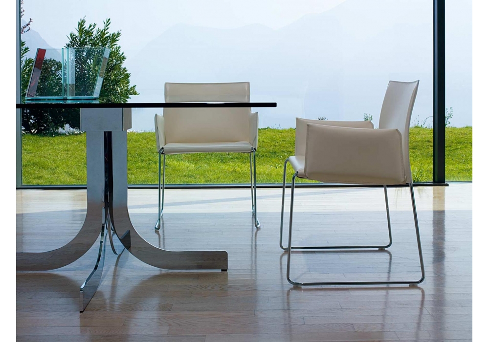 Bizzy designed by Franco Bizzozero for Enrico Pellizzoni is a chair with steel rod structure in different finishes, seat and back upholstered in different materials and colours. Underseat in sheet metal covered in black technical fabric. The Bizzy chair is also available in the version with or without armrests.