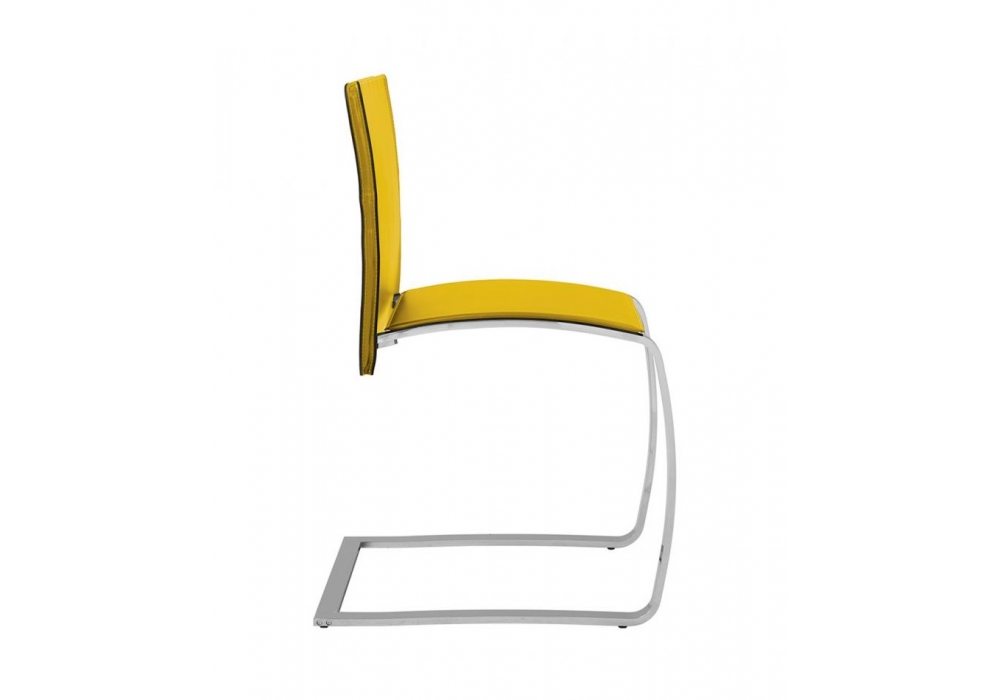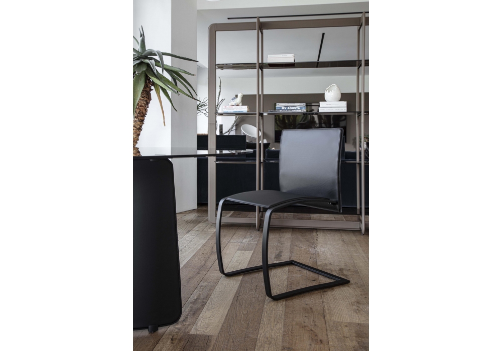 Zen designed by Christian Werner for Enrico Pellizzoni is a chair with steel structure and sheet metal seat. Seat and back upholstered in leather in different colours.