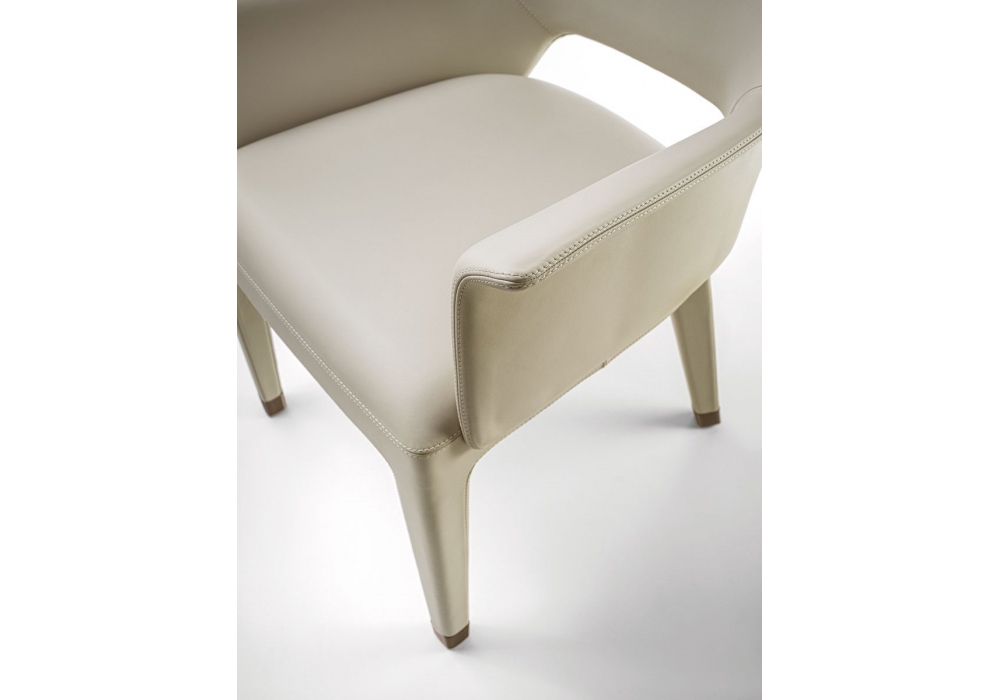 Harmony designed by Ben Wu for Longhi is a chair with backrest structure in iron and cold-molded polyurethane. Seat base in wood with elastic straps covered in multi-density polyurethane foam. Cover in non-removable leather or velvet. To preserve the leather that covers the heel of the leg, 4 bronze-colored PLA protection tips are inserted (as an option). On request available in the two-tone version.