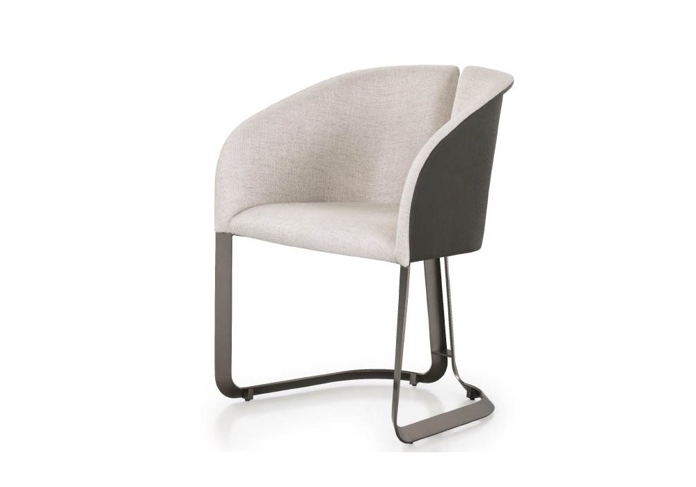 Milano designed by Blengini Ghirardelli for Turri is a chair with curved metal base in brushed nickel finish with feet in plastic material. Plywood structure padded with multi-density polyurethane foam with non-removable covers in different fabrics or leathers.