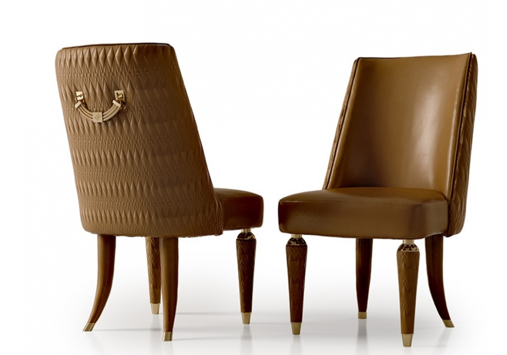 Numero Tre designed by Roberto Serio for Turri is a chair with structure in plywood and solid wood upholstered with multi-density polyurethane foam. Upholstery in different non-removable fabrics or leathers. The legs are made of solid wood and covered in embroidered leather to match the backrest. On the back there is a handle in woven leather and golden metal. Available in the version with or without armrests.