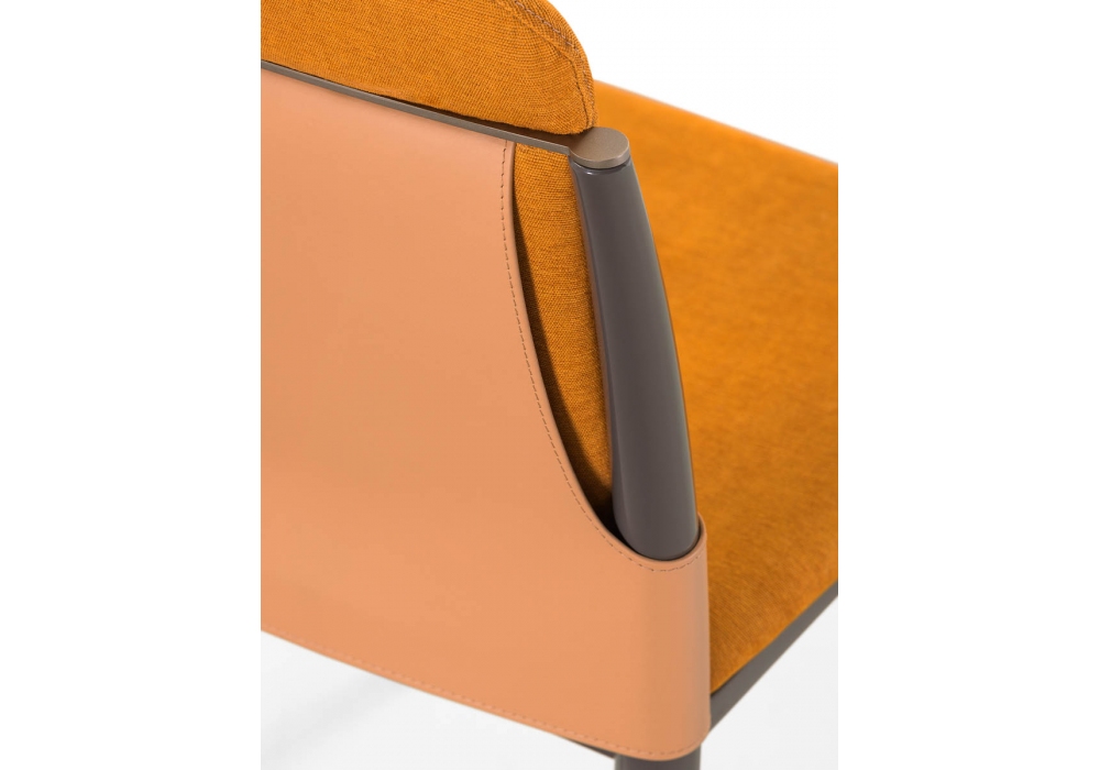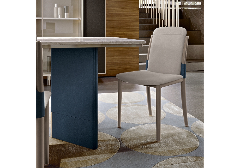 Zero designed by Andrea Bonini for Tutti is a chair with plywood and solid wood structure in single-colour lacquered glossy polyester finish. Upholstery in different fabrics or leathers. On the back there is a leather lined pocket.