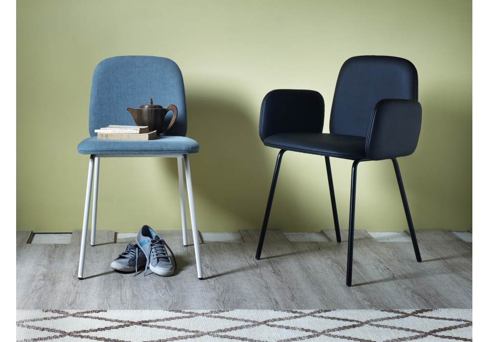 Leda designed by Francesco Beghetto for Miniforms is a chair with fabric or eco-leather upholstery. Metal structure available in different colours.