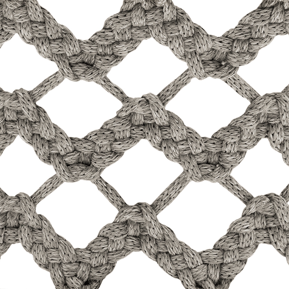 Flair O' Couture designed by Monica Armani for B&B Italia is a chair made with an internal steel back structure wrapped in interweaving polypropylene ribbons, available in four colours, and rests on a truncated cone foot with a lenticular base. Two padded cushions complete the chair. Upholstery entirely in removable fabric.