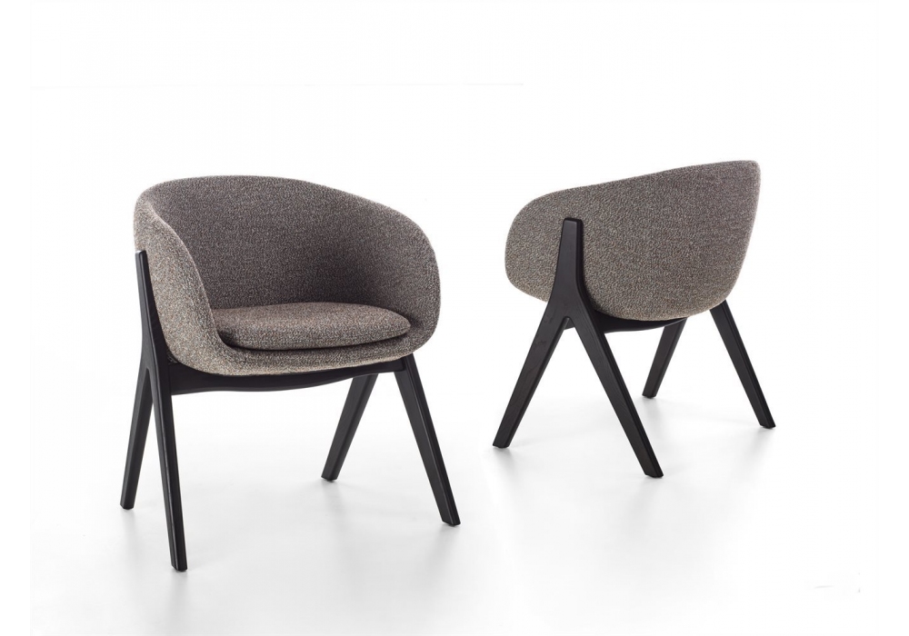 Lambda designed by Giuseppe Viganò for Porada is a chair with structure in solid ash or canaletta walnut and upholstery in fabric or leather. Seat cushion with removable cover.