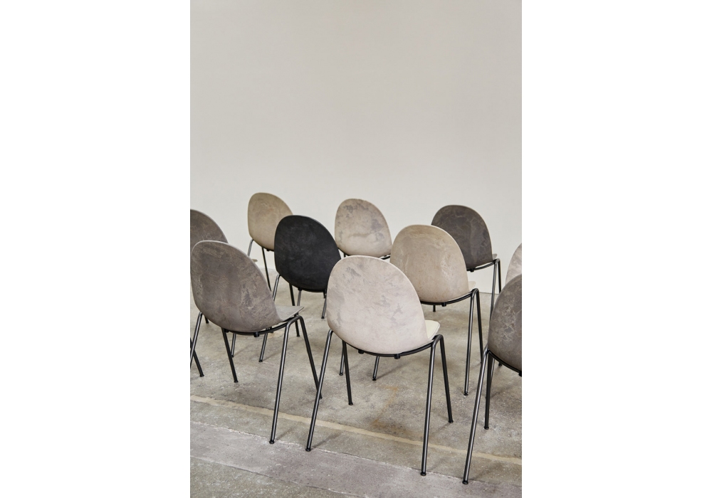 Eternity designed by Space Copenhagen for Mater is a chair with steel tube legs, gunmetal finish, seat and backrest in Matek®. Available in different finishes and in the version with or without armrests.