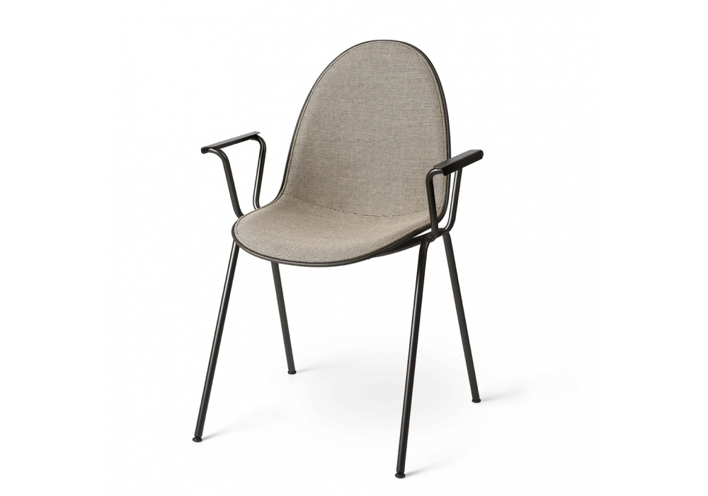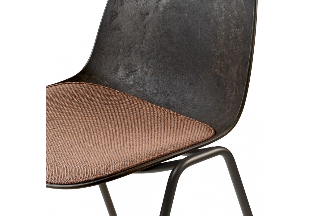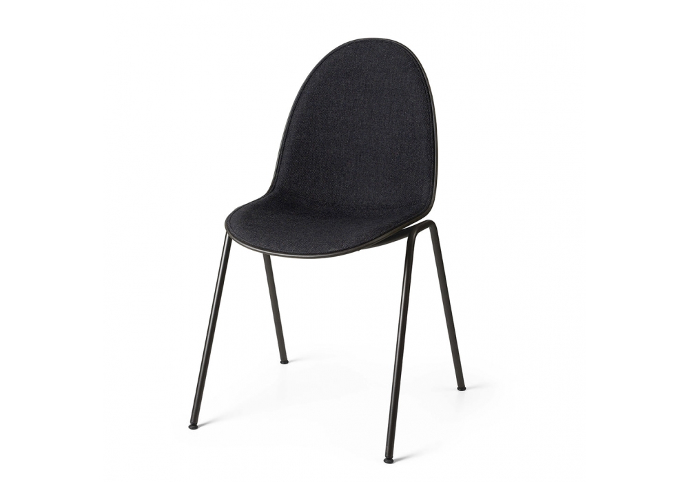 Eternity designed by Space Copenhagen for Mater is a padded chair with steel legs, gunmetal finish, seat in Matek®, upholstery in fabric or leather. Available in different versions.