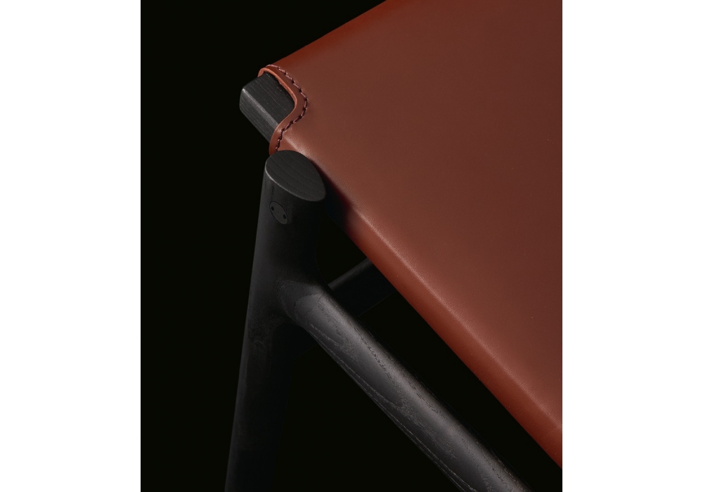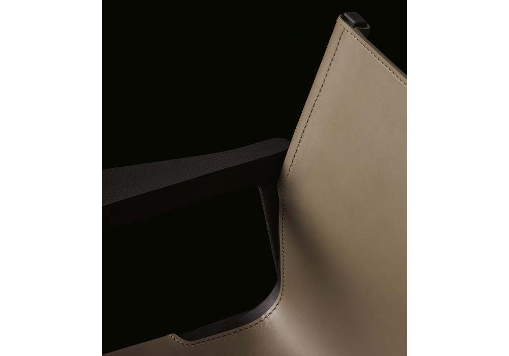 Ipanema Cuoio designed by Jean Marie Massaud for Poliform is a chair with structure in solid wood spessart oak or stained black elm. Seat and back in non-removable hide in the sample colours. With or without armrests.