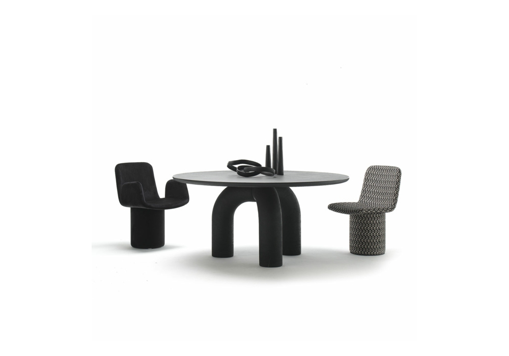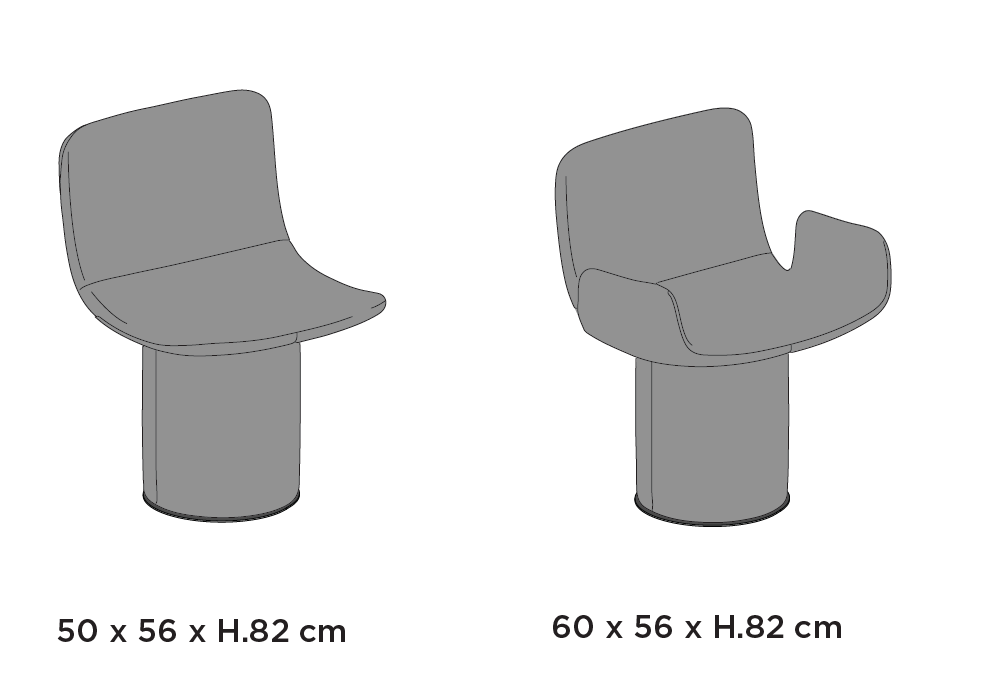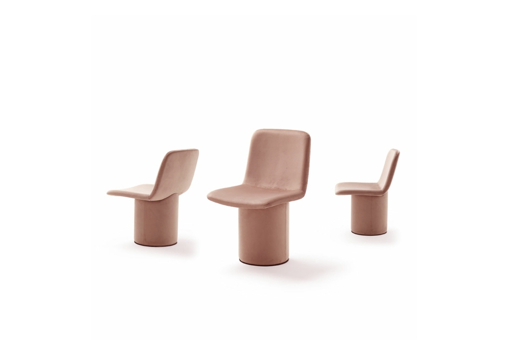 Brera designed by Dainelli Studio for Mogg is a padded chair with or without armrests, with curved plywood structure and black metal floor plate. Upholstery in fabric or leather.