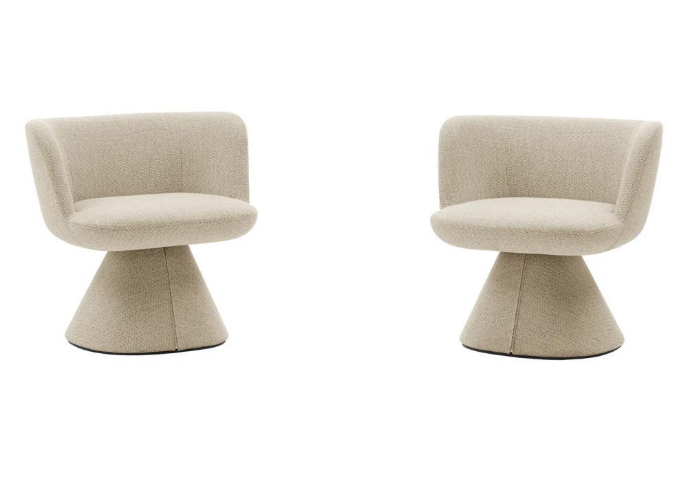 Flair O' Maxi designed by Monica Armani for B&B Italia is a small armchair with a supporting structure in tubular and steel profiles. The frame has Bayfit® flexible cold-formed polyurethane foam padding and polyester fiber lining. Supplied with a swivel mechanism made of extruded aluminum steel laminate with automatic return system. The covering is in completely removable fabric available in different finishes.