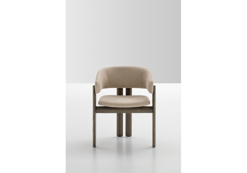 Biarritz designed by Dainelli Studio for Ditre Italia is a chair with solid ash structure, padded seat and backrest with fabric or leather covering.