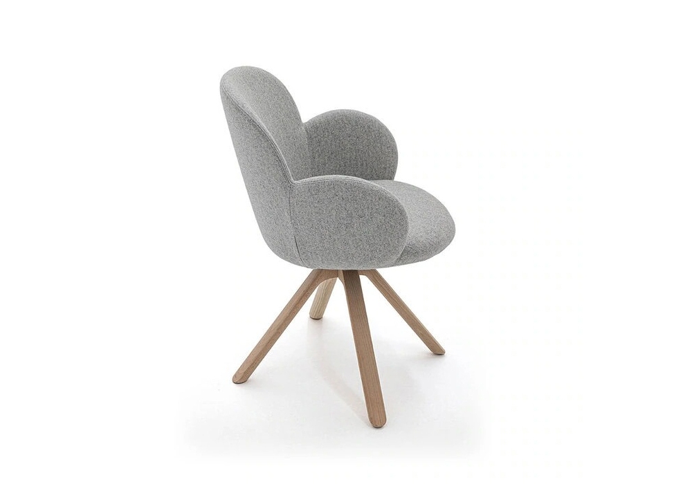 Tulp designed by Stefan Scholten for Moroso is a chair with armrests with base in painted stainless steel or ash. The shell is in rigid polyurethane with flexible polyurethane foam padding entirely covered in fabric or leather. Tulp is available in different models and finishes.