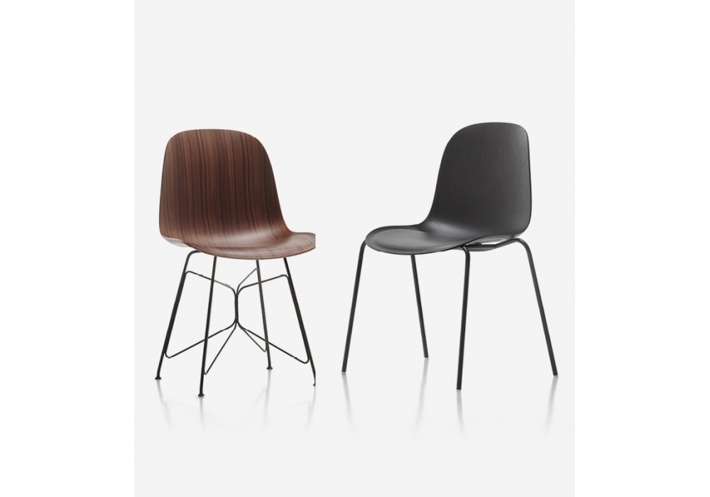 Press designed by Benjamin Hubert for MDF Italia is a chair characterized by the base in powder-coated metal in different finishes and two variants, shell in beech or walnut plywood.