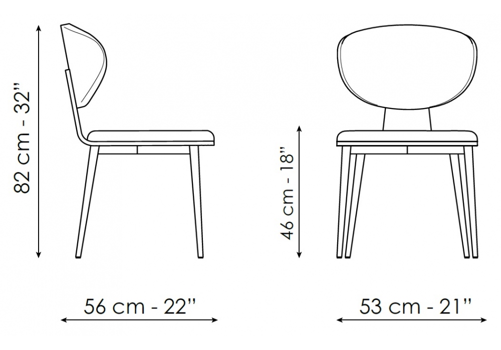 Olos Met designed by Mauro Lipparini for Bonaldo is a chair with plywood structure, ash backrest and painted metal legs. Padded seat and backrest covered in fabric or leather.