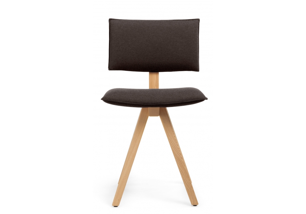 Trave designed by Brogliato Traverso for Magis is a chair with a structure in solid natural ash, stained black or in rivere finish. Seat and backrest padded and covered in removable fabric.