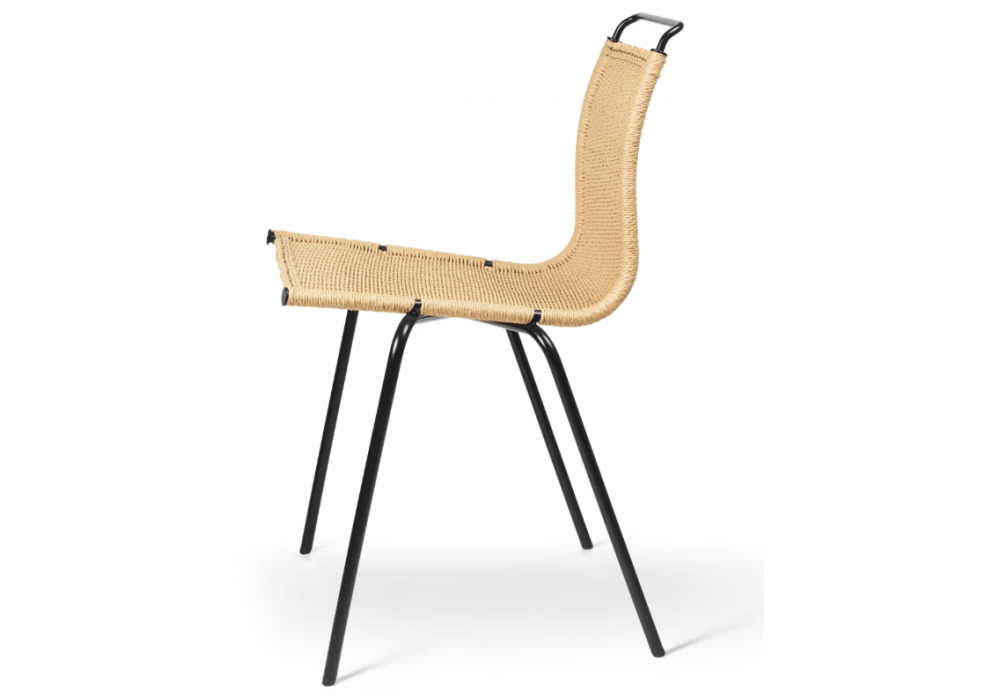 PK1 designed by Poul Kjærholm for Carl Hansen & Søn is a chair with a stainless steel or black powder coated frame. Seat in natural paper cord.