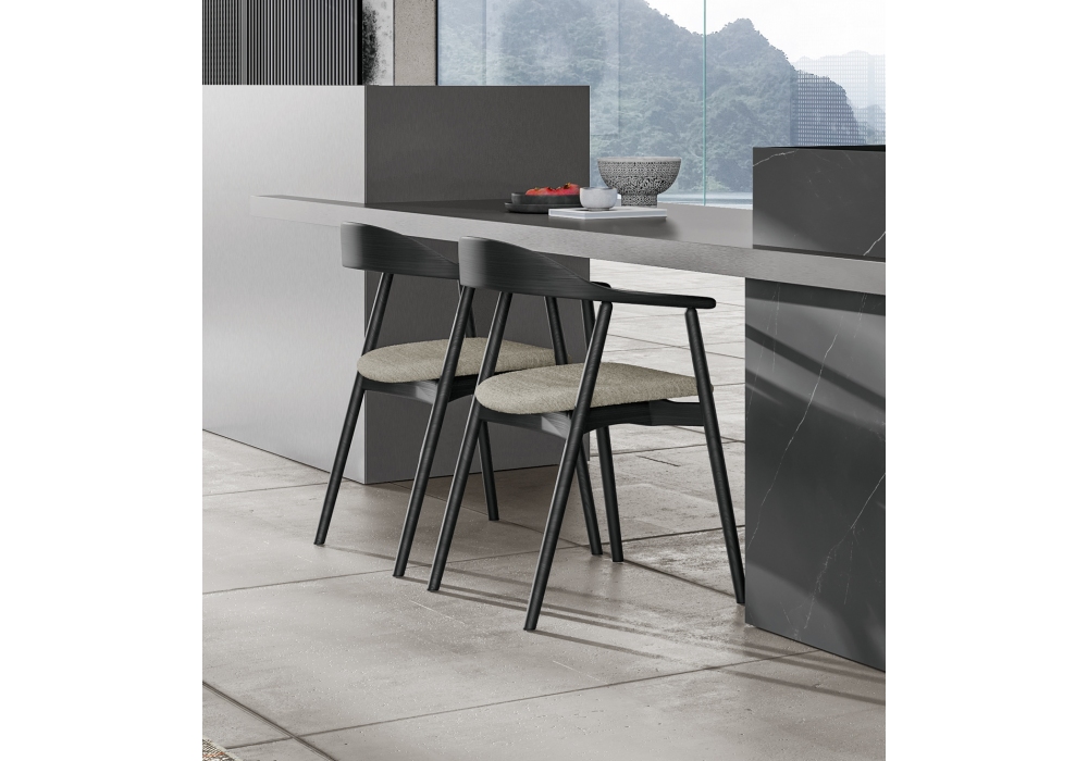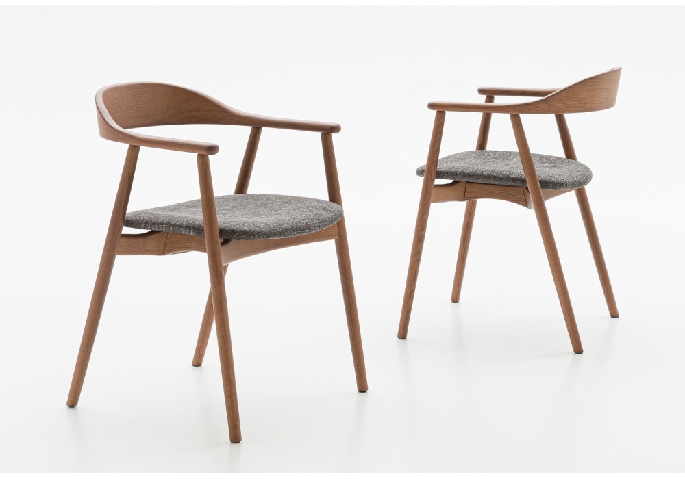 Wolly designed by Dall'Agnese is a padded chair made with a wooden structure and upholstery in fabric, leather or eco-leather.