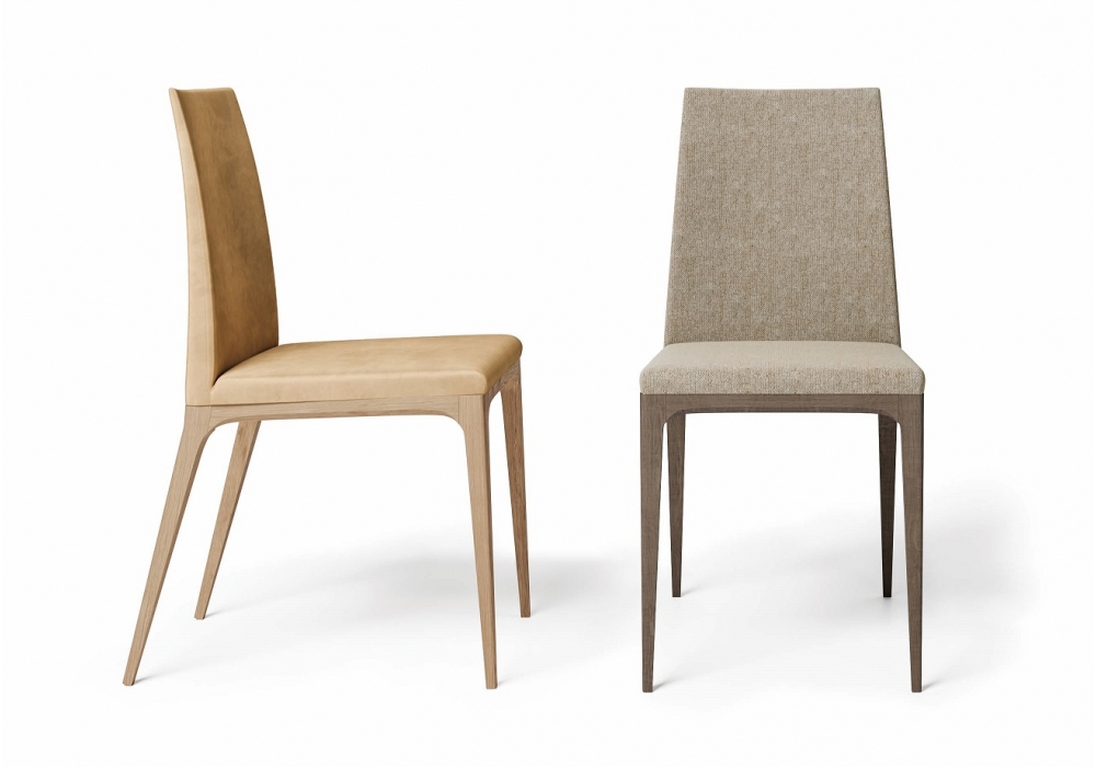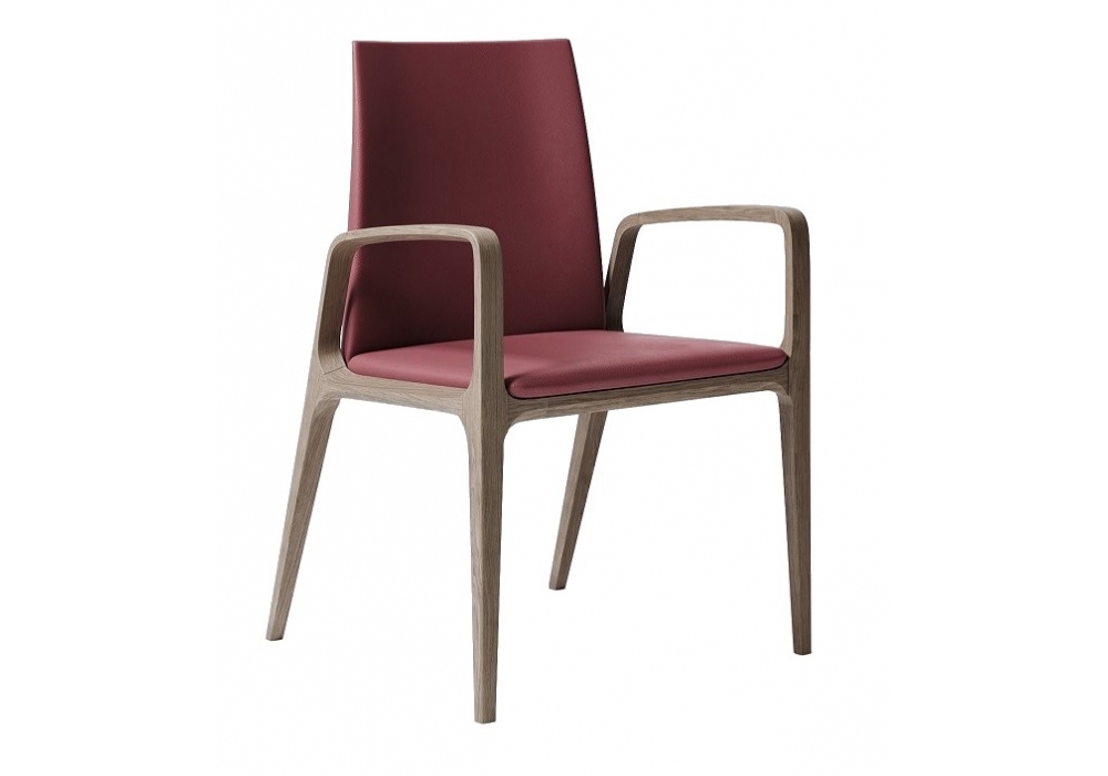 Wendy designed by Dall'Agnese is a padded chair with or without armrests made with a wooden frame and fabric, leather or eco-leather upholstery. Also available with the backrest upholstery in a different finish from the front.
