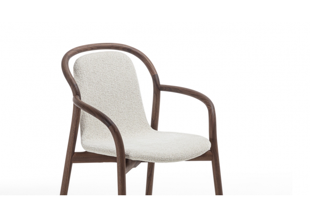 Petra designed by Meneghello Paolelli for Porada is a chair with armrests with a structure in solid canaletta walnut and upholstery in different fabrics or leathers.