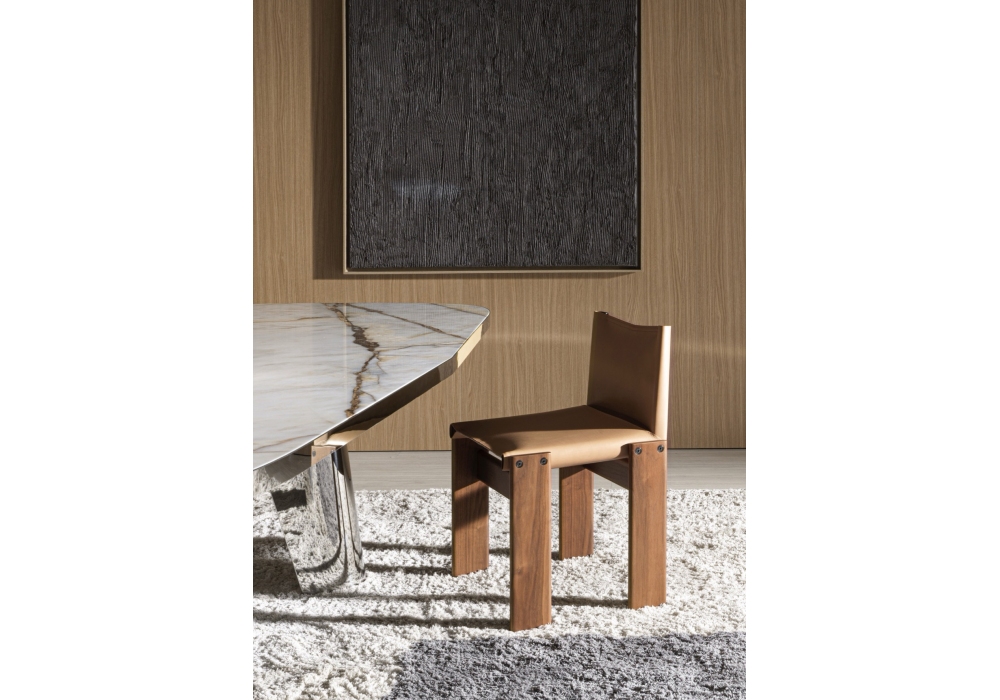 Monk designed by Tobia Scarpa for Molteni&C is a chair with a solid wood structure available in different finishes. Seat structure is made of two hide leather sections shaped for comfort and available in any color from the Molteni&C collection. Ideal to complement the dining area.