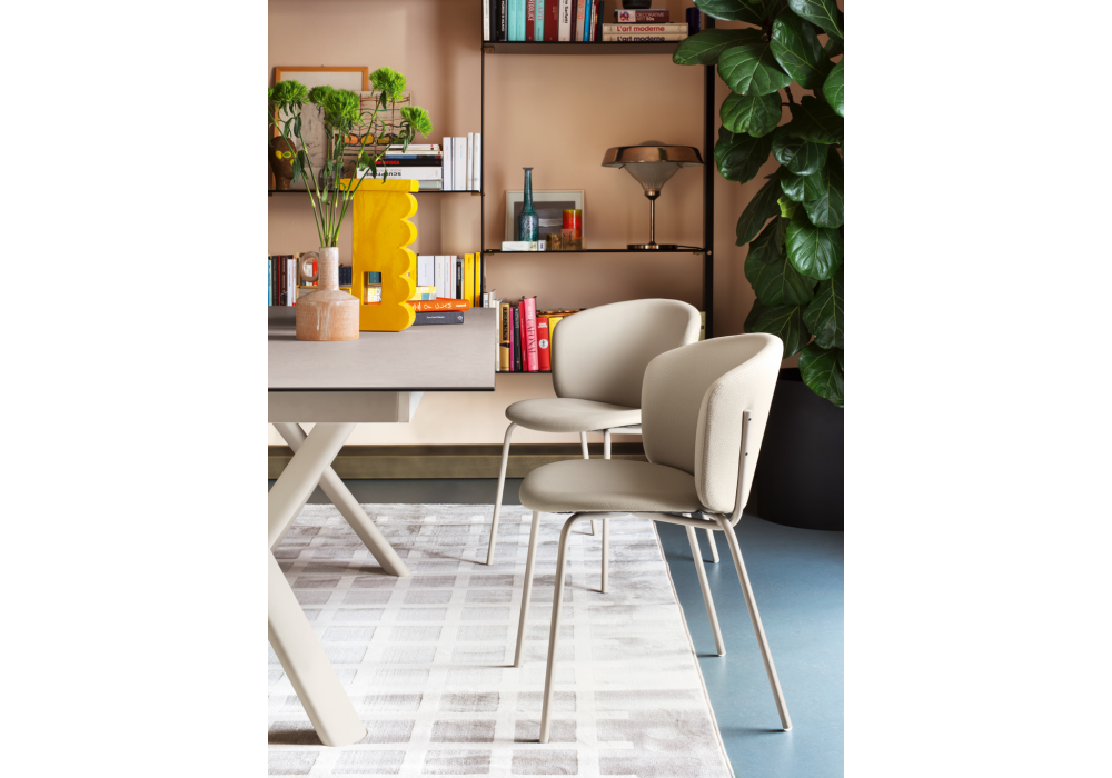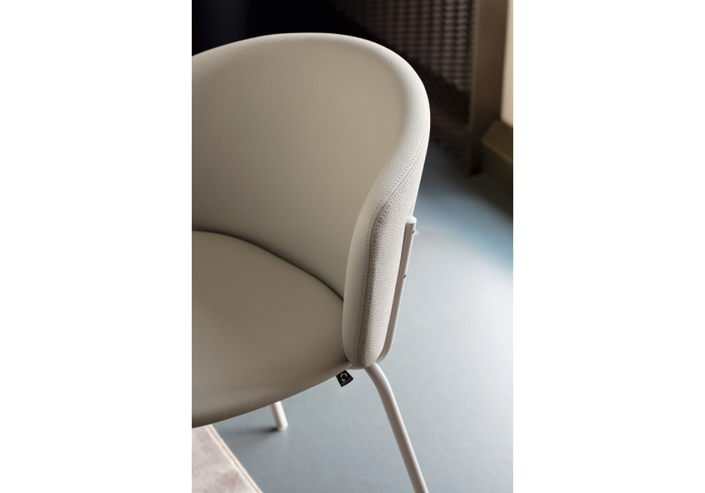 Desy Mid designed by Connubia is a chair with a painted metal frame, seat and backrest in fabric or leather. Available in different finishes.