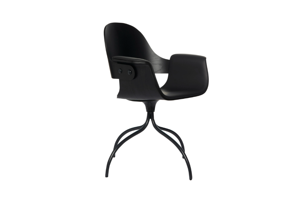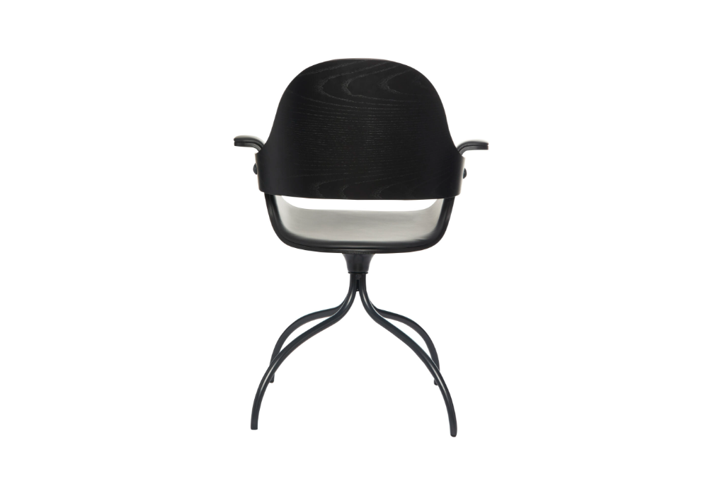 Showtime designed by Jaime Hayon for BD Barcelona is a chair with a swivel base in metal tubing and die-cast aluminum. Shell in beech plywood in various finishes.
