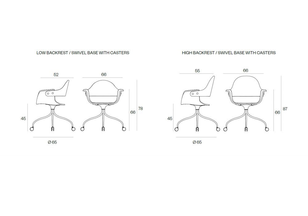 Showtime designed by Jaime Hayon for BD Barcelona is a swivel chair in metal with casters. The shell is made of beech plywood with upholstery in different fabrics or leathers.