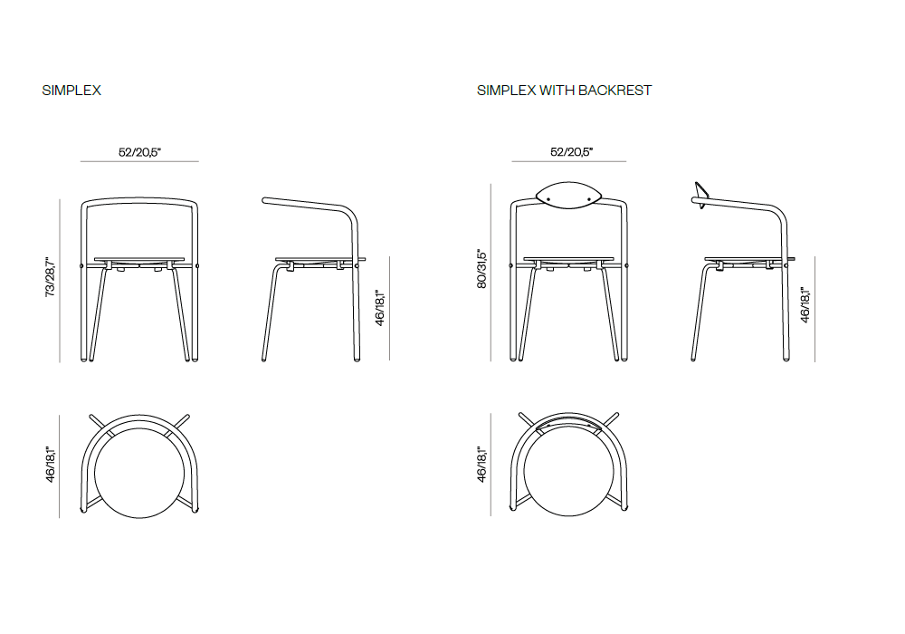 | Dimensions | 52 x 46 x H 73 cm; 52 x 46 x H 80 cm ( with backrest). |