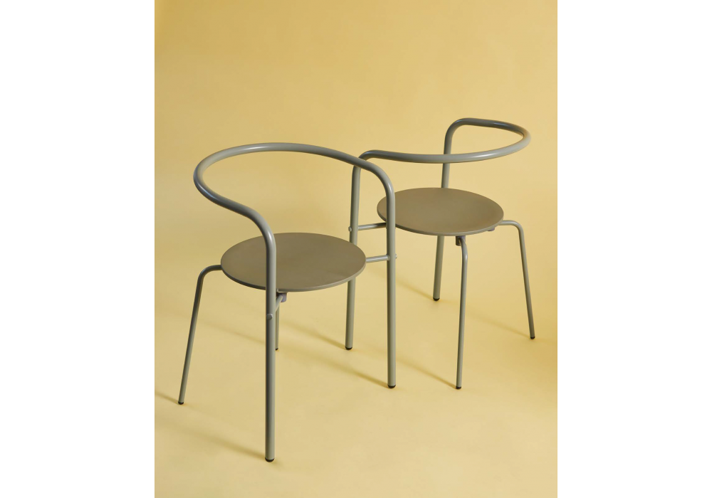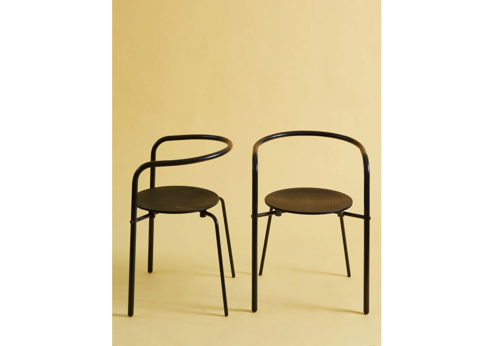Simplex designed by Oscar Tusquets for BD Barcelona is a chair made of beech plywood stained in 3 colors. The structure is made of steel tubes in the same color as the wood.
